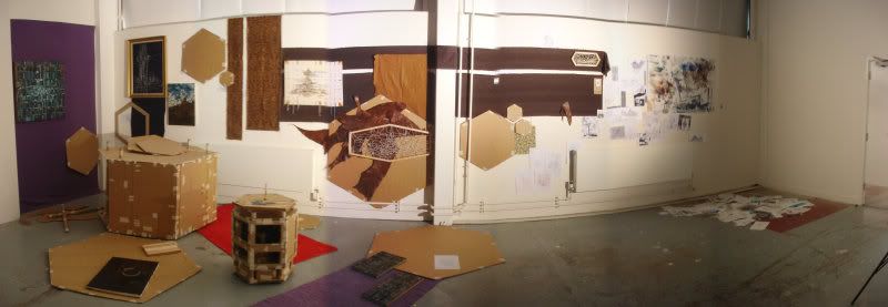 so the exhibition has been and gone, although thanks to illness i found the whole experience rather strenuous, it was thoroughly productive and generally positive and at least partially clarifying endeavor. wednesdays tutorial raised some rather crucial areas into which i shall be reading over the next month or so and fridays discussion group gave me a much needed outside perspective on my motives, presentation and theory etc. i will go into these aspects in more detail but for now i think some documentation of the end result will suffice..